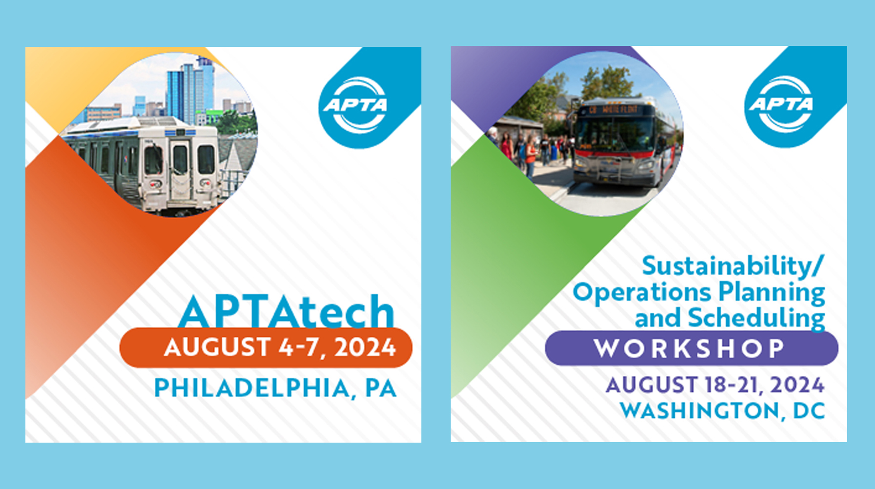 APTA 2024 TRANSform Conference Open for Registration! Passenger Transport , Apta’s sustainability/operations planning and scheduling workshop, aug.